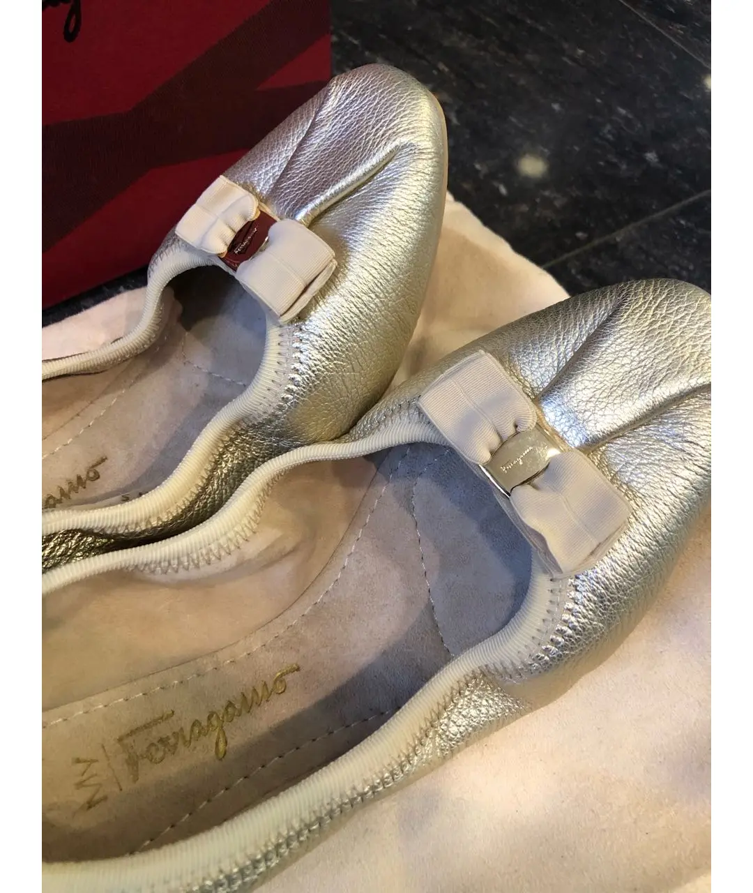 Балетки женские из мягкий кожи в золотистом оттенке.