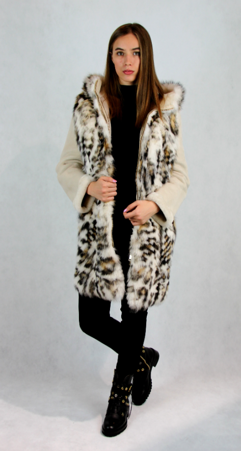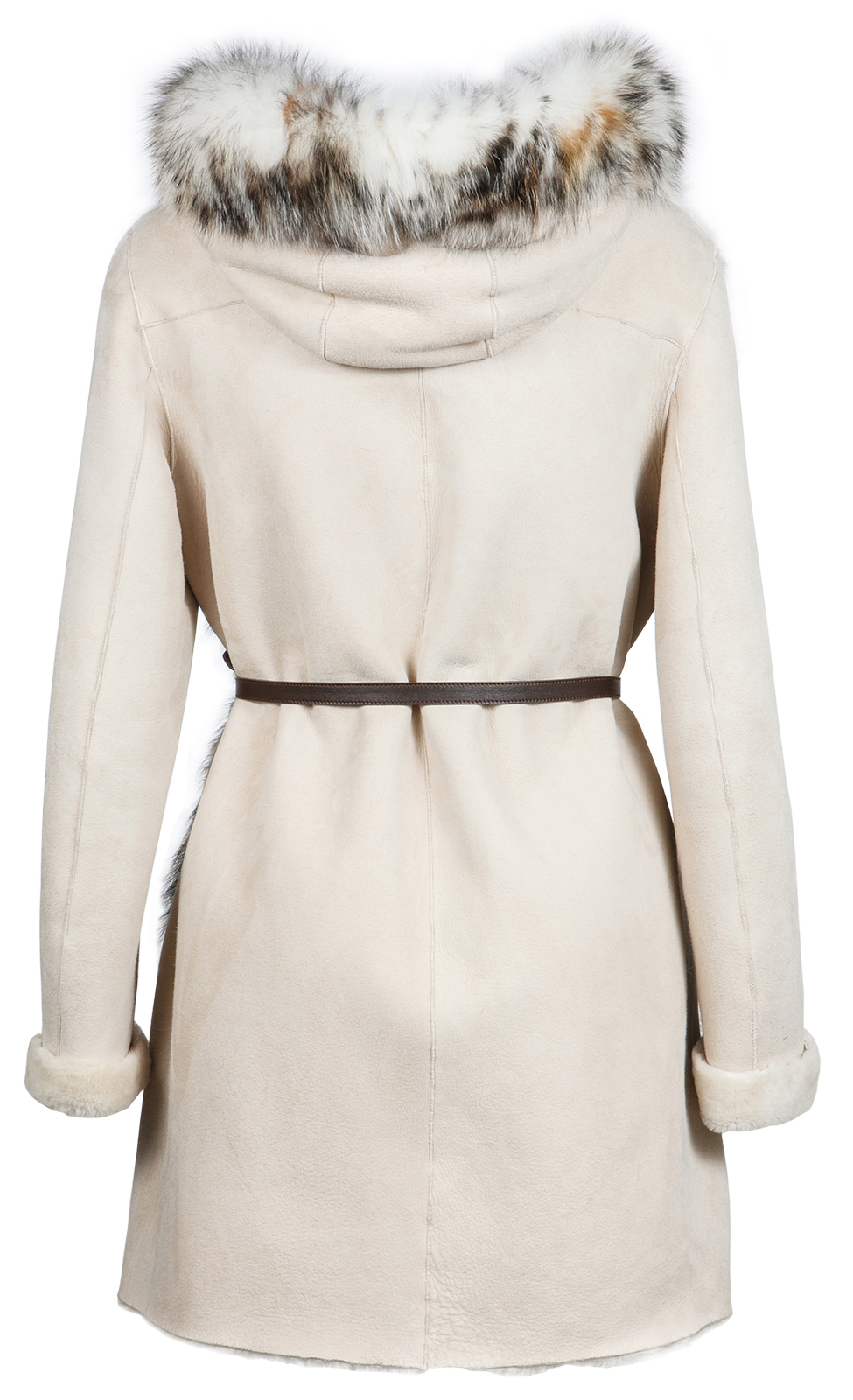 Дубленка женская с капюшоном GIULIANA TESO. Отделка мехом лисы, верх замша, подкладка 100% овчина. Производство Италия.