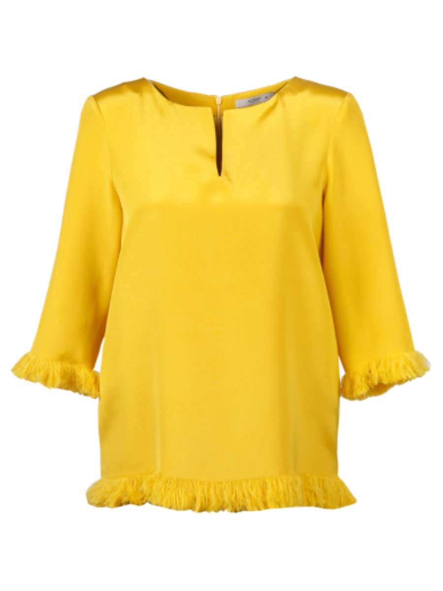 Блуза женская с бахромой от ETRO. Особенности: небольшой разрез на горловине, свободный крой.