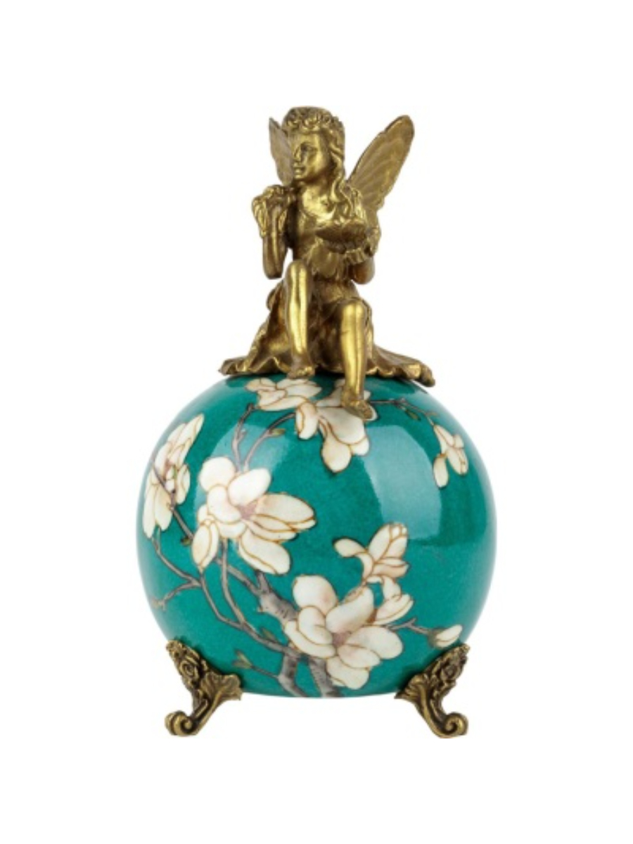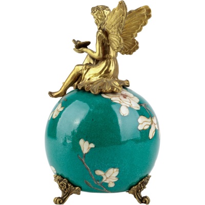 Фигурка Фея на шаре, выполненная из фарфора с бронзовыми элементами. Уникальное изделие ручной работы. При производстве этих художественных изделий из фарфора с бронзой используются вековые традиции китайских мастеров. Видимые трещинки (кракелюры) делаются по уникальной технологии, что придает более благородный вид старинного изделия.