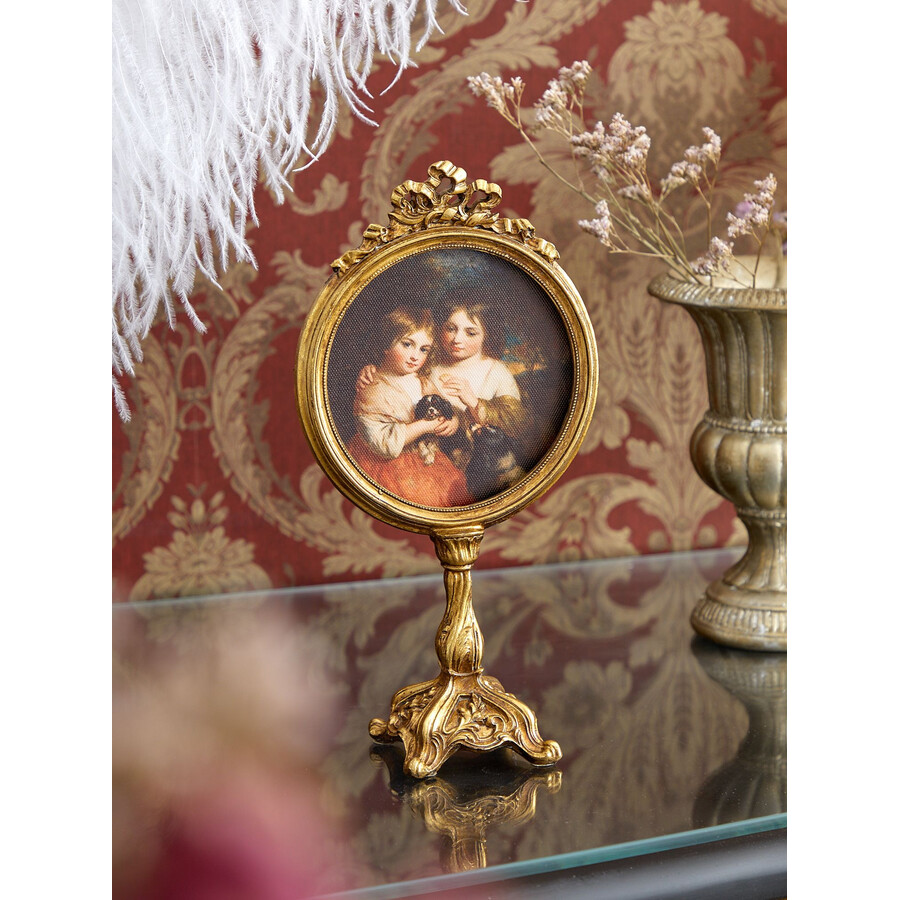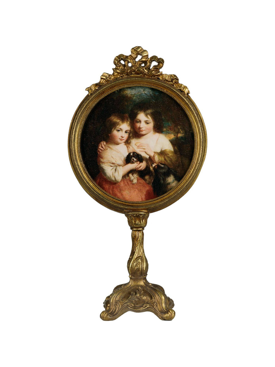 Интерьерная картина под старину, с изображением девочек с собаками, придаст уют вашему интерьеру и поможет создать уникальную композицию сочетанием нескольких предметов. Изделие имеет признаки искусственного состаривания.