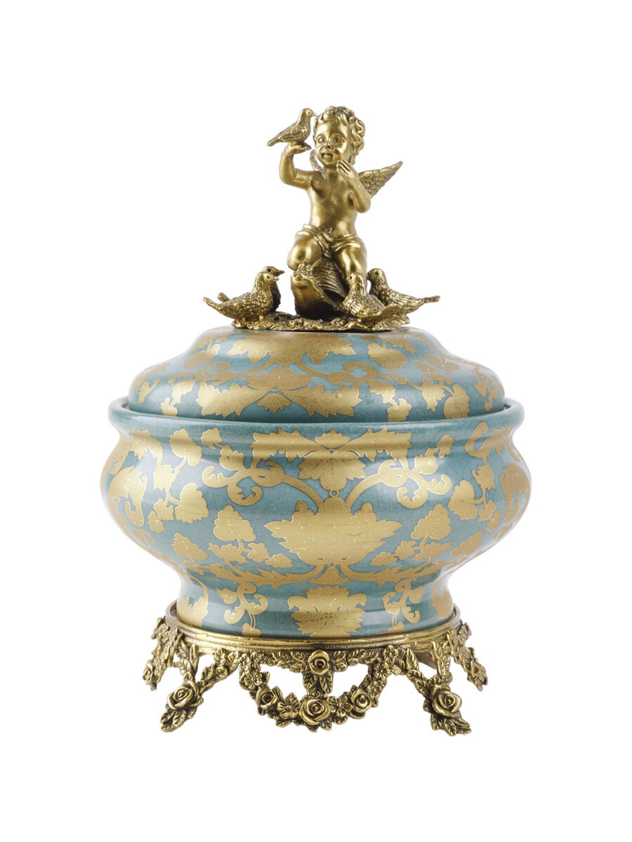 Шкатулка, выполненные из фарфора с бронзовыми элементами. Уникальное изделие ручной работы. При производстве этих художественных изделий из фарфора с бронзой используются вековые традиции китайских мастеров. Видимые трещинки (кракелюры) делаются по уникальной технологии, что придает более благородный вид старинного изделия.