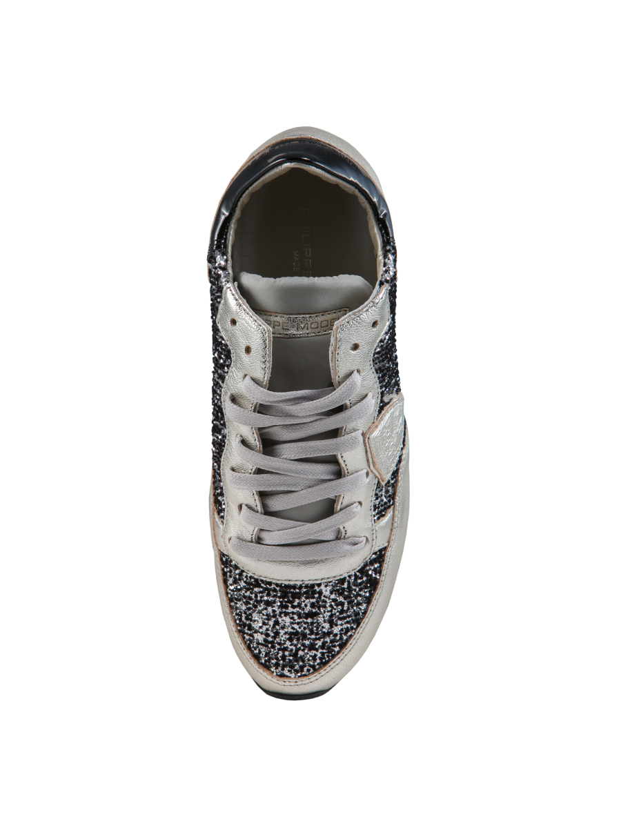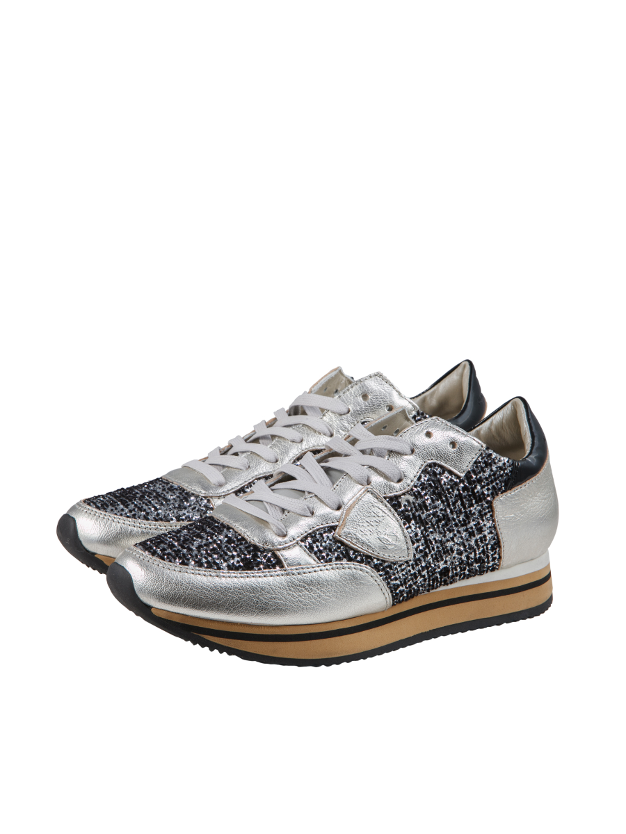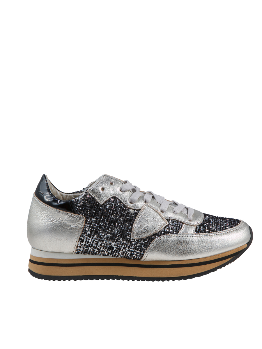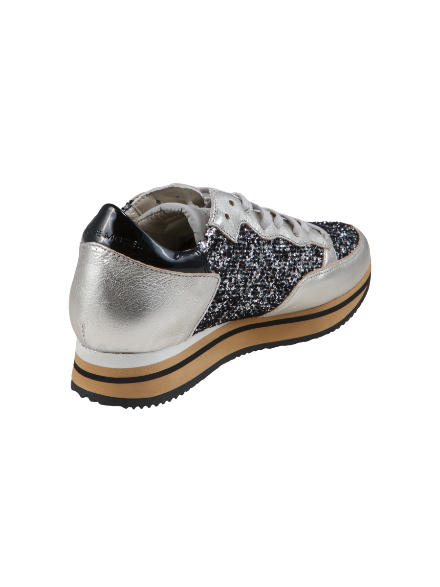 Кроссовки женские с блестящими вставками на шнуровке, загругленный нос. Высота платформы 2 см, высота каблука 3 см