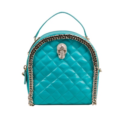 Сумка-рюкзак из натуральной кожи, декорированный глянцевыми элементами цепи. Имеет два отдела на молнии.