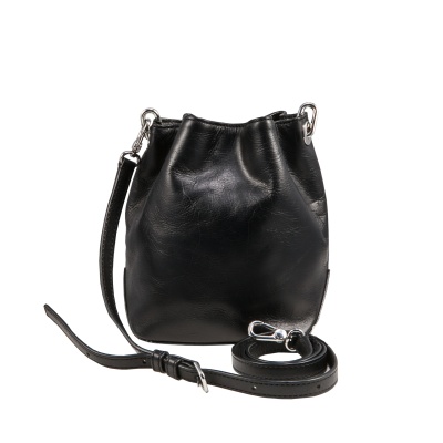 Женская сумка-ведро из натуральной кожи с завязкой на шнурок, с регулируемым съемным плечевым ремне , с одним наружным карманом.