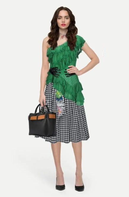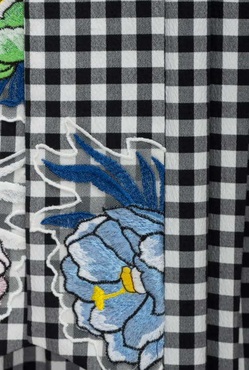 Юбка расклешенная в модную клетку с вышитым пояском. Количество карманов: 2. Пояс можно завязывать назад и вперед. Состав: 99% хлопок, 1% эластан. Вставка: 71% полиэстер, 15% вискоза, 7% хлопок, 7% полиамид. Образы с этой юбкой прилагаются в фото.